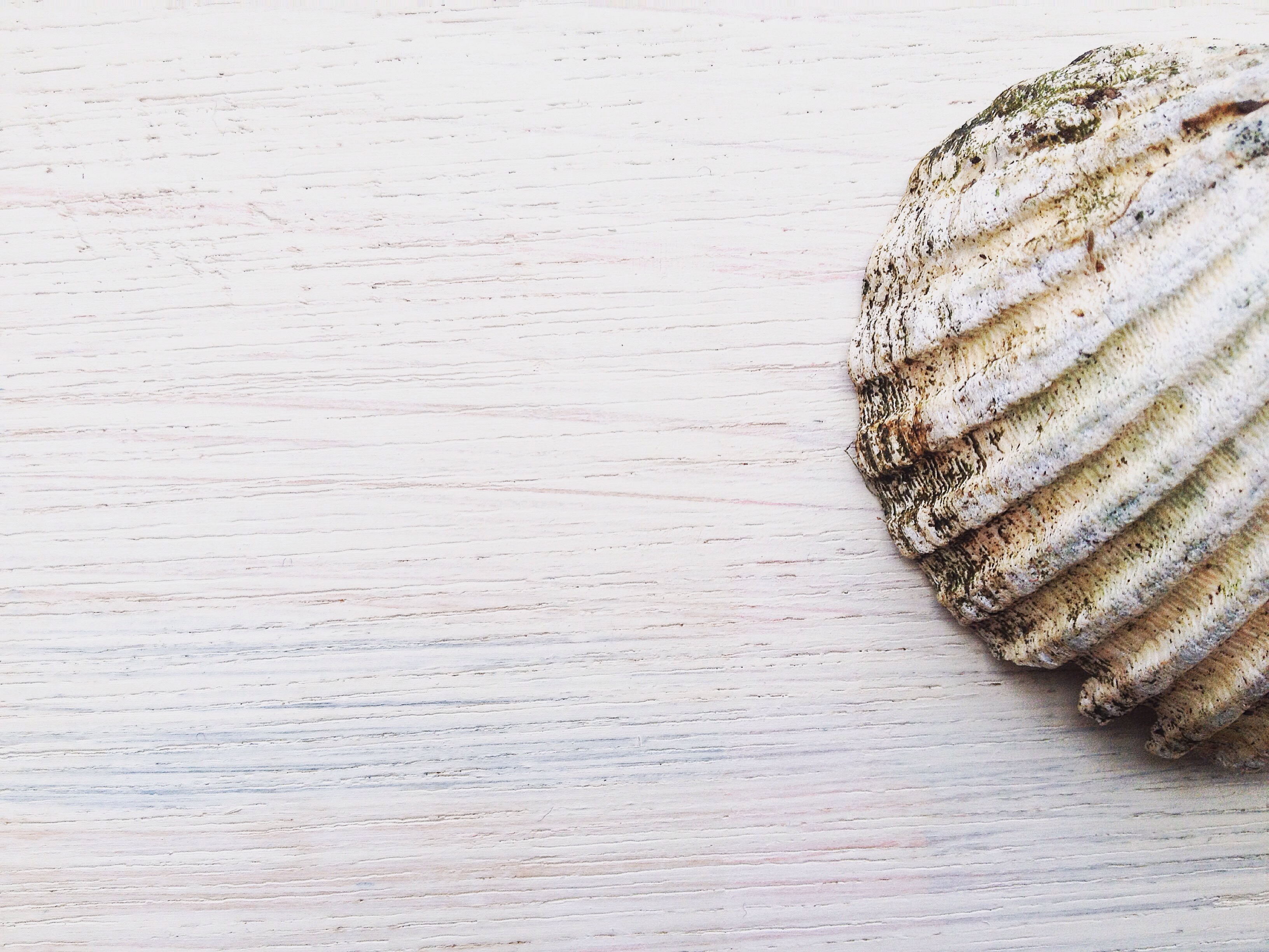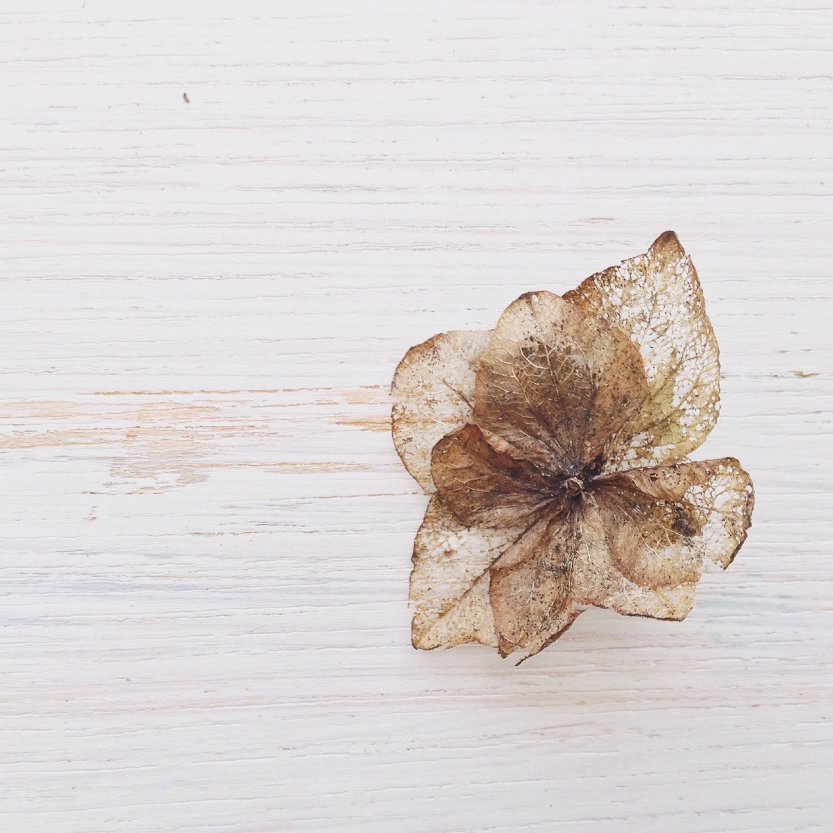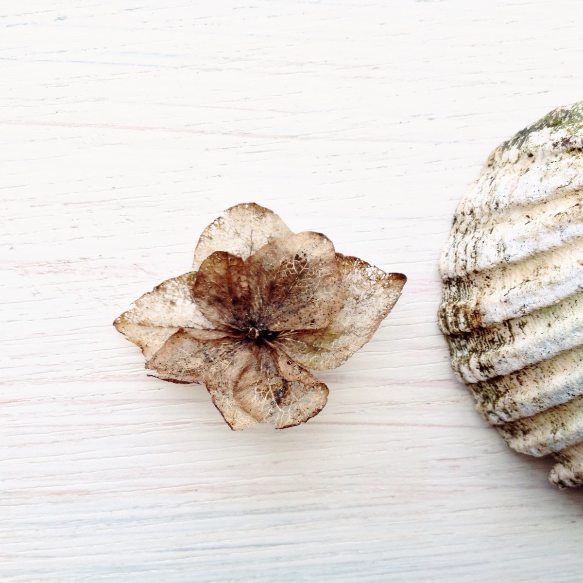 Here I’ve played about with a little cool composition. The textures of the dried flowers and shell contrast beautifully against the white washed wood. The depth and contrast of your objects is key for a successful flat lay.
