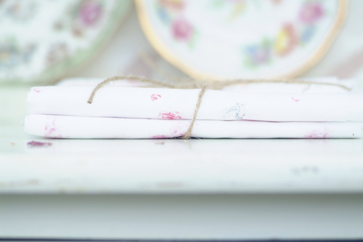 Tatty pink roses linen.