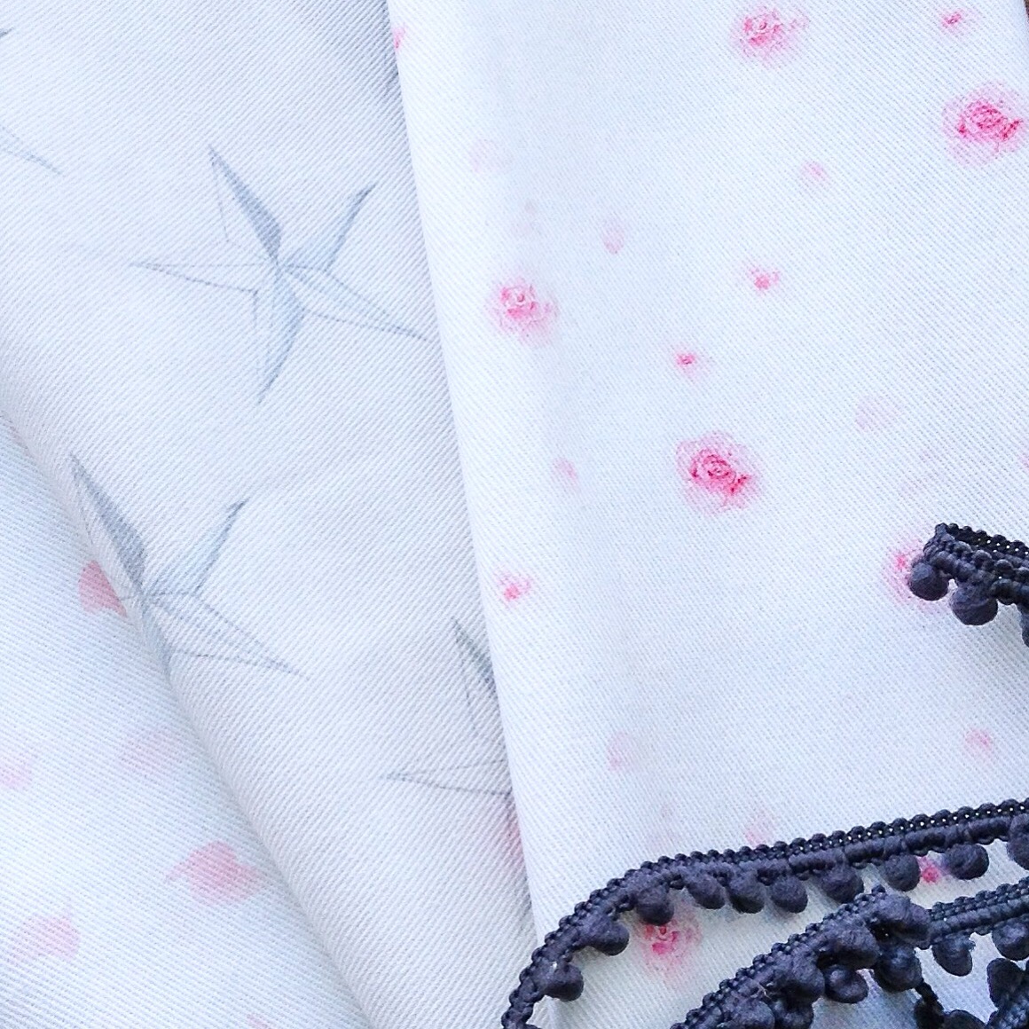 A selection of my watercolour for fabric design work, digitally printed onto soft cotton drill and fine linens. Cotton from £38.00 pm, linen from £55.00 pm, please see my store for further info, shop link top of page.